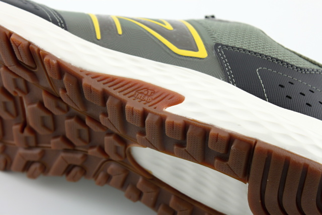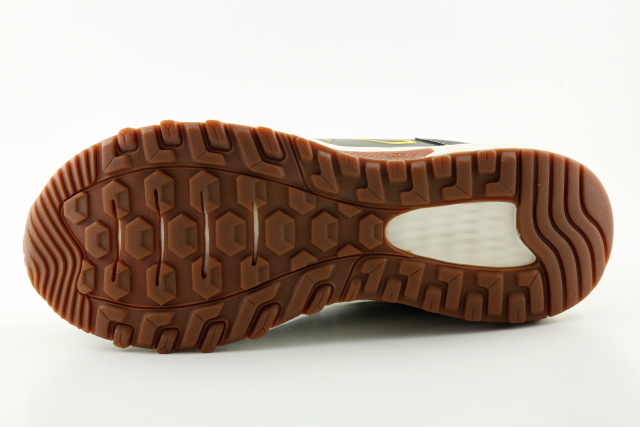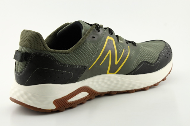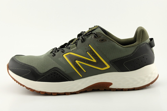 Pánský sportovní model obuvi NEW BALANCE v nadměrných velikostech, barva zelená + hnědá + barevné detaily. Vhodné jako běžecká obuv do nenáročného terénu.